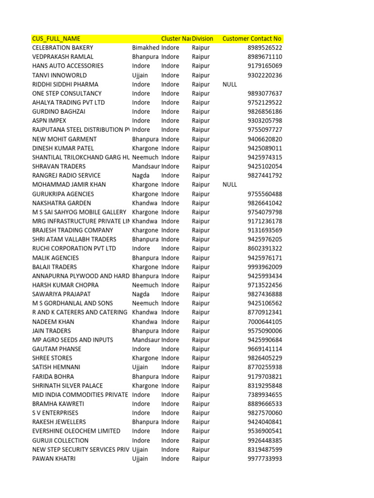 CHARBHUJA SALES Indore Indore Raipur 9826887187