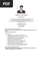 Seafarers Registration Certificate Seaman Able with Registration No. 0298191-96 Date Issued: November 21, 2000 Skills Proficient at work -Effective ability to perform physically demanding work on a consistent basis -Knowledgeable and very comfortable working efficiently with a variety of hand, power and pneumatic tools -Skilled in radio communication -Acquired professional drivers license, restriction code 123 Hardworking and Responsible -Excellent worker under independent conditions -Can handle work pressure in a professional manner -Exercises initiative and innovativeness -Practices safety at work -Adaptable and has good communication skills -Communicates well with individuals within and outside the organization to achieve a common goal -Continuously hone skills through extensive readings and participation in relevant activities -Eager to learn and adapt new ideas Honest and Trustworthy -Can handle matters, which require utmost confidentiality Addition Info Philippine Seamans Book No. A695782 Issue/ Expiry Date: December 9, 2004 / December 8, 2009 Cyprus Seamans Book No. CY082480 Issue/ Expiry Date: Limassol / June 24, 2005 / June 23, 2015 Philippine Passport No. PP0512683 Issue/ Expiry Date: December 10, 2004 / December 10, 2009 U.S. VISA No. 20050815580003 Issue/ Expiry Date: March 22, 2005 / March 21, 2010 Tools for Effective Living Legacy Training Center, Ortigas, Pasig City February 24, 2005 Basic Trainers Training Legacy Training Center, Ortigas, Pasig City