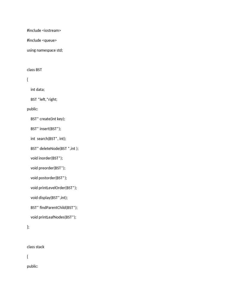 cout<<"\n5.Height First/Level Order Traversal"; //print nodes level wise