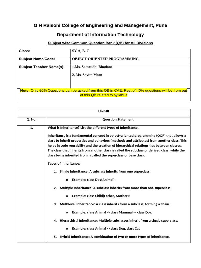 Note: Only 60% Questions can be asked from this QB in CAE. Rest of 40% questions will be from out