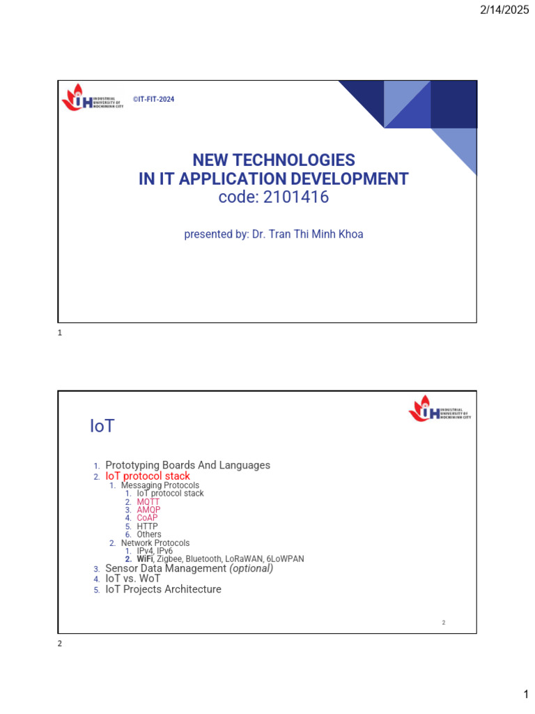 2. WiFi, Zigbee, Bluetooth, LoRaWAN, 6LoWPAN