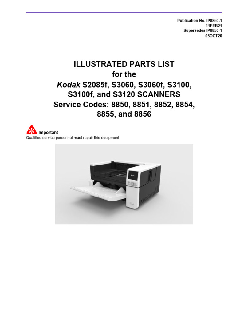 Item Part No. Description Quantity S2085f S3060 S3060f S3100 S3100f S3120 Notes
