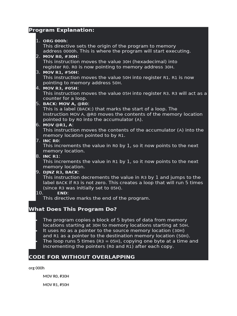 memory locations starting at 30H to a destination starting at 35H. Here's
