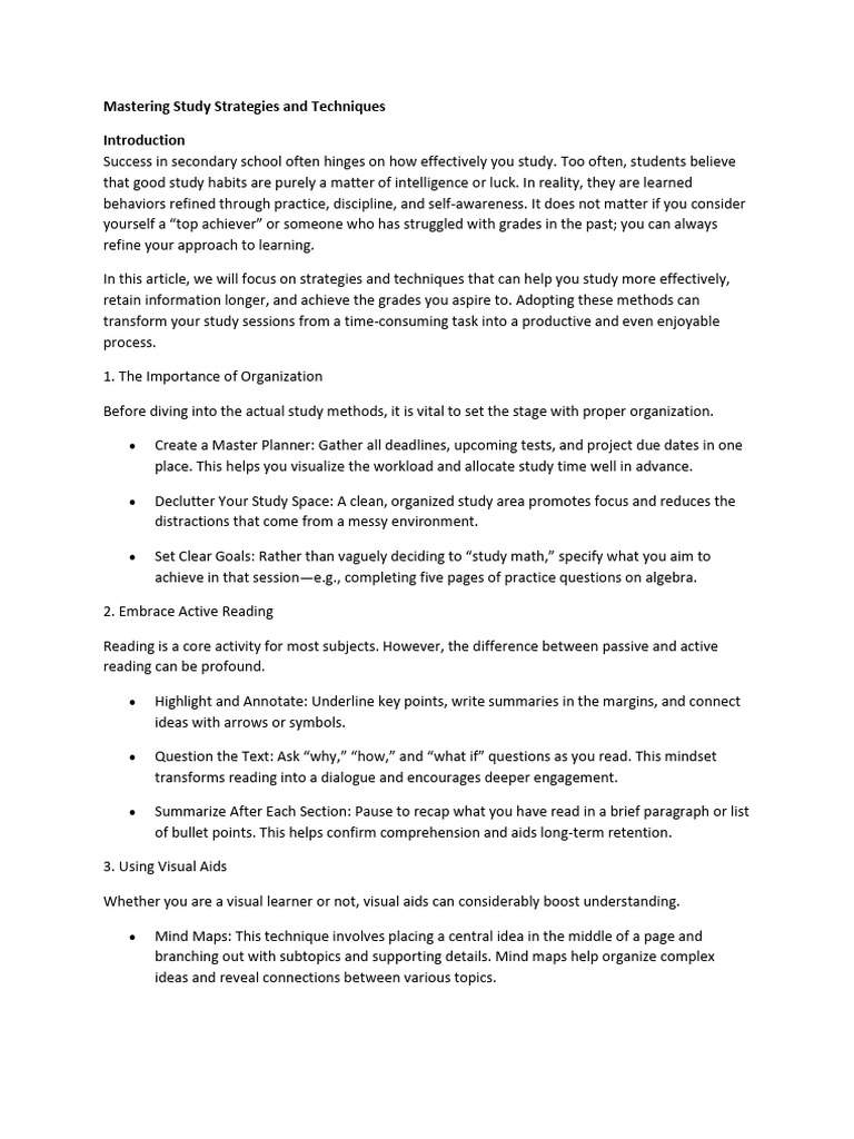 Success in secondary school often hinges on how effectively you study. Too often, students believe