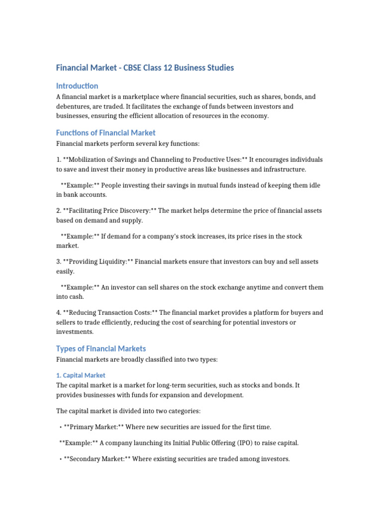 2. **Facilitating Price Discovery:** The market helps determine the price of financial assets