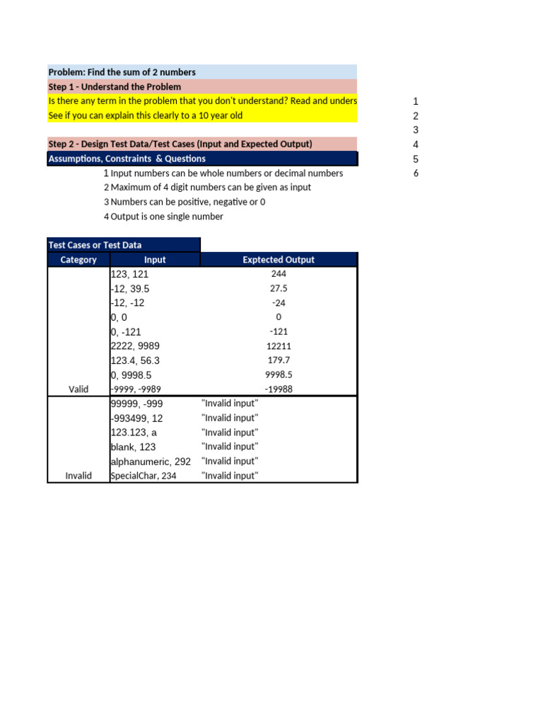 Step 2 - Design Test Data/Test Cases (Input and Expected Output) 4
