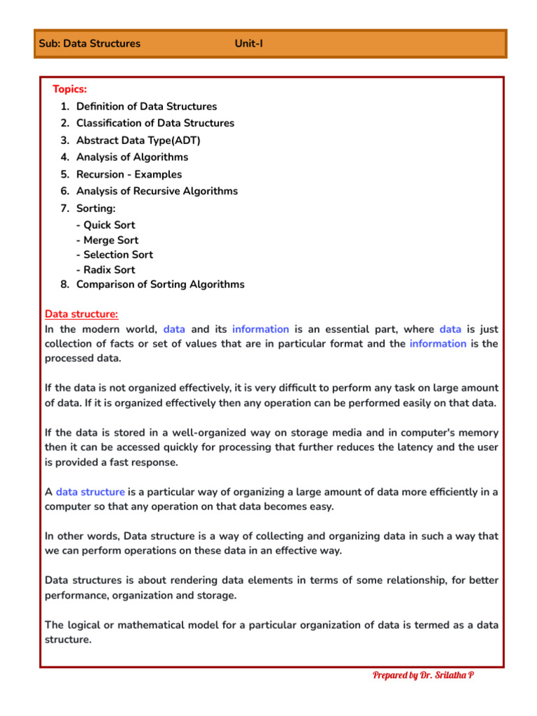 Data Structures - Unit-I