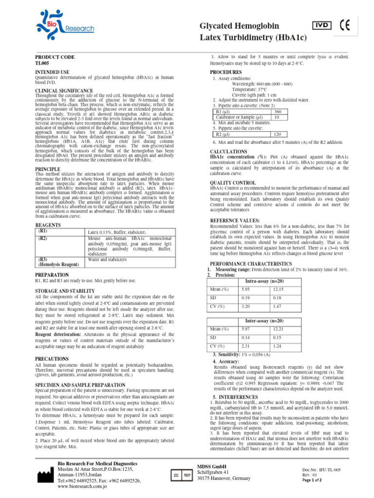(R1) Latex 0,13%, Buffer, stabilizer. glycemic control of a person with diabetes. Each laboratory should