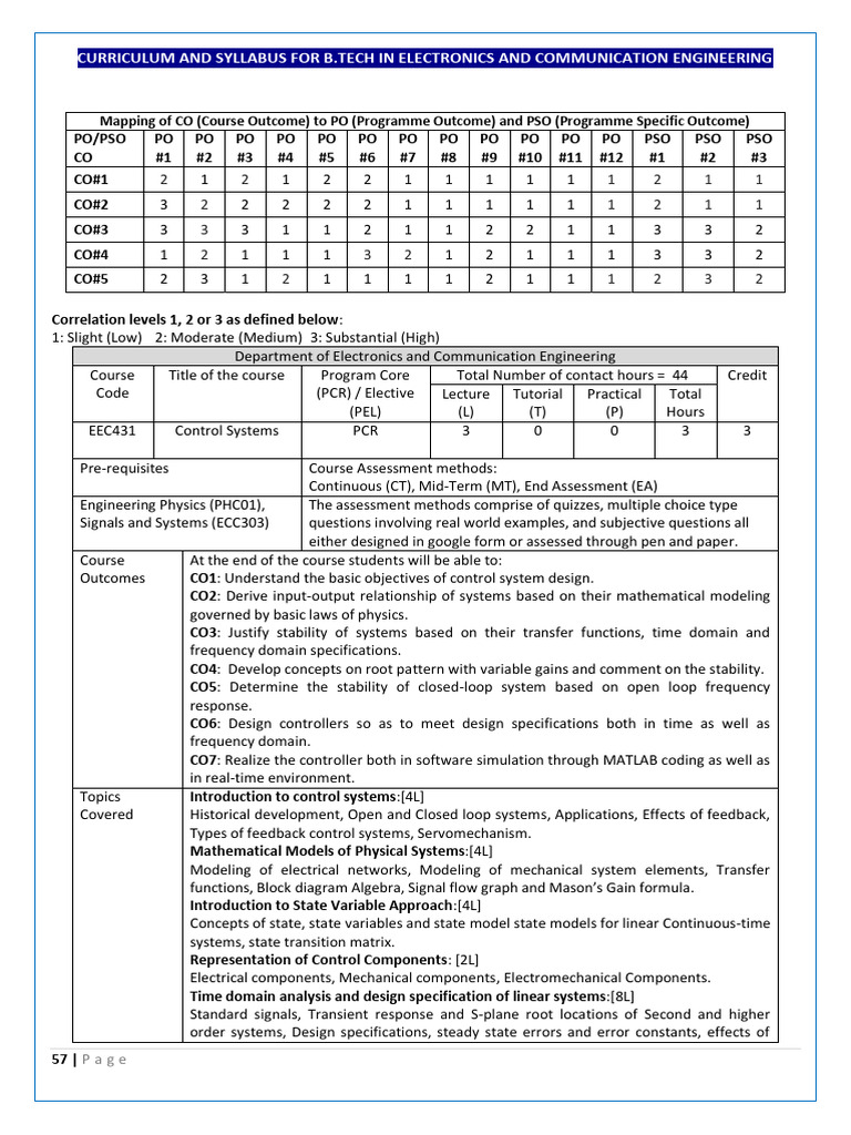 CURRICULUM AND SYLLABUS FOR B.TECH IN ELECTRONICS AND COMMUNICATION ENGINEERING