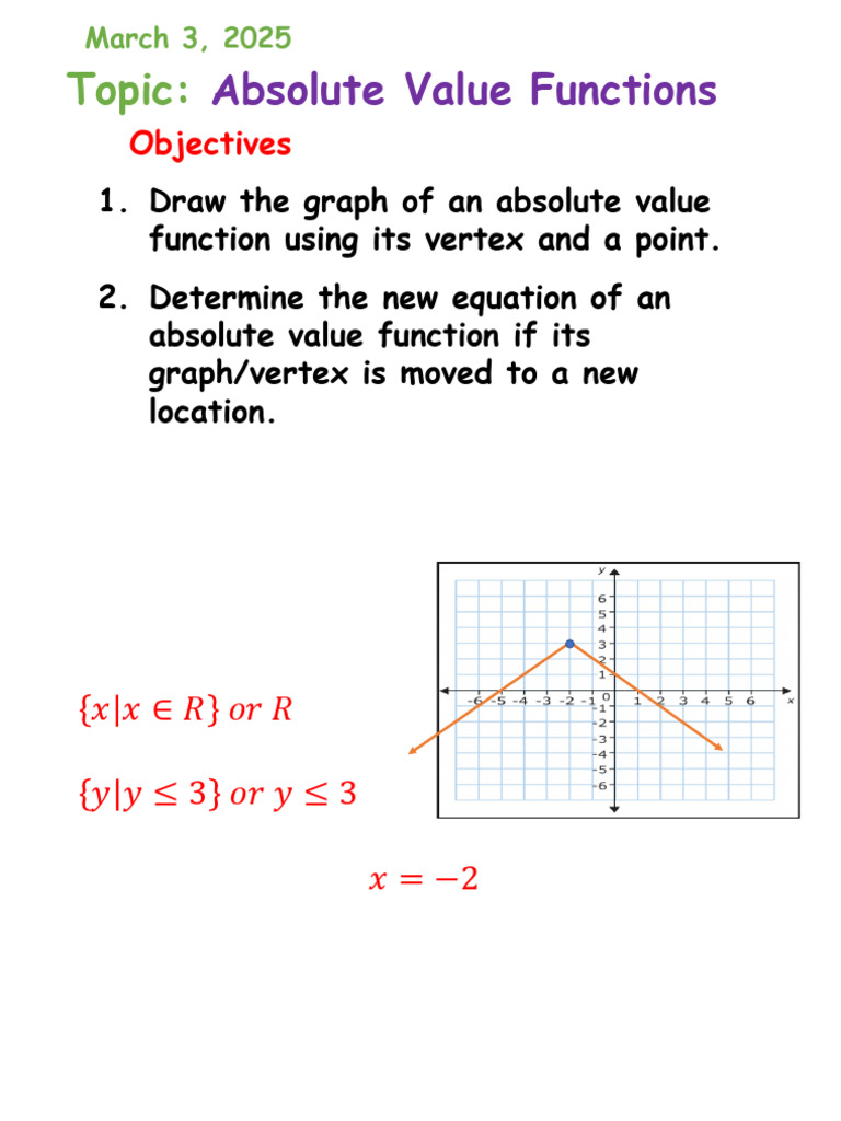 Recall : 𝑓 𝑥 = 𝑎 𝑥 − ℎ + 𝑘, where ℎ, 𝑘 is the vertex