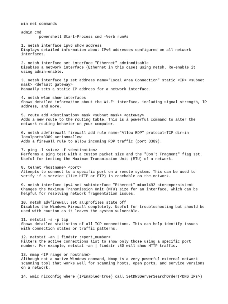 14. wmic nicconfig where (IPEnabled=true) call SetDNSServerSearchOrder(<DNS IPs>)