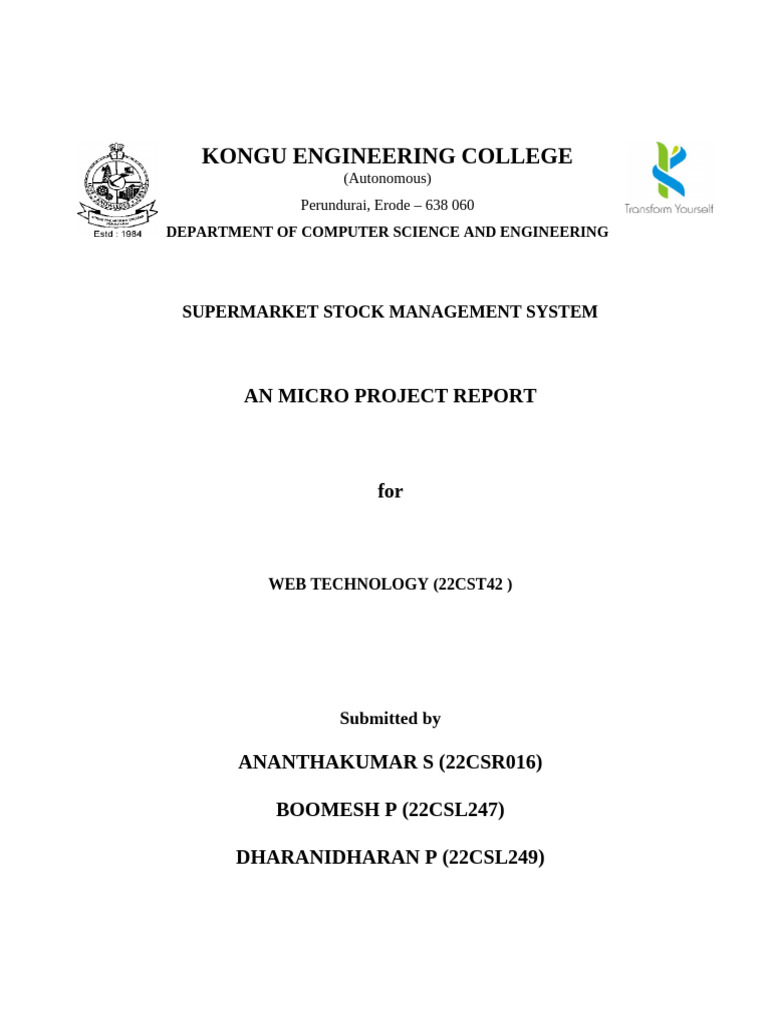 The project "Supermarket Stock Management System" aims to provide a robust,