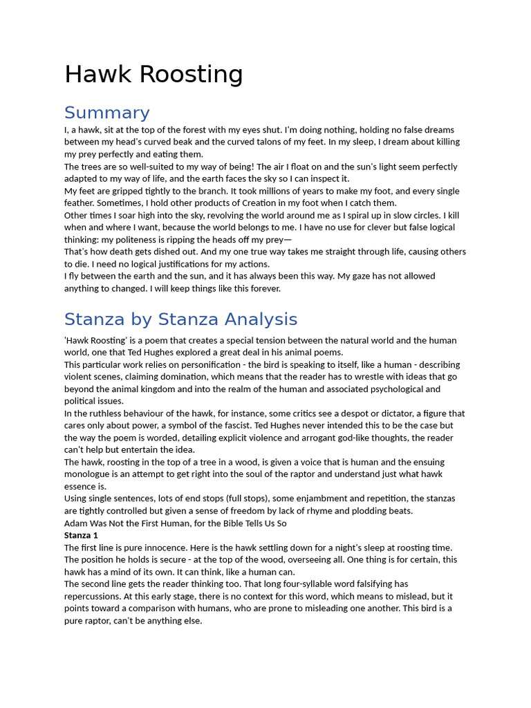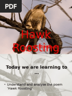 Hawk Roosting signifies self-esteem or self-assertion of a Hawk that is so alienated from the human