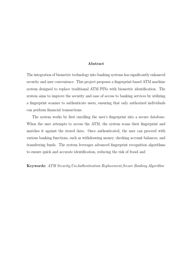 security and user convenience. This project proposes a fingerprint-based ATM machine