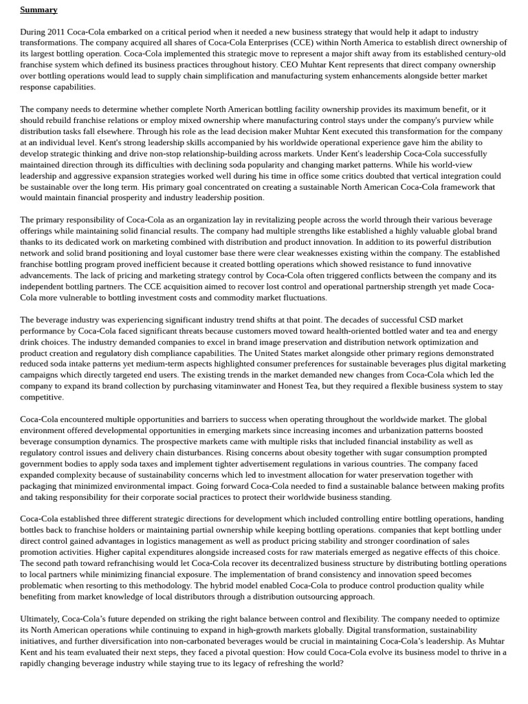 Ultimately, Coca-Cola’s future depended on striking the right balance between control and flexibility. The company needed to optimize