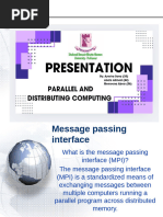• MPI stands for message-passing interface, standard provided as a library for exchanging data (called