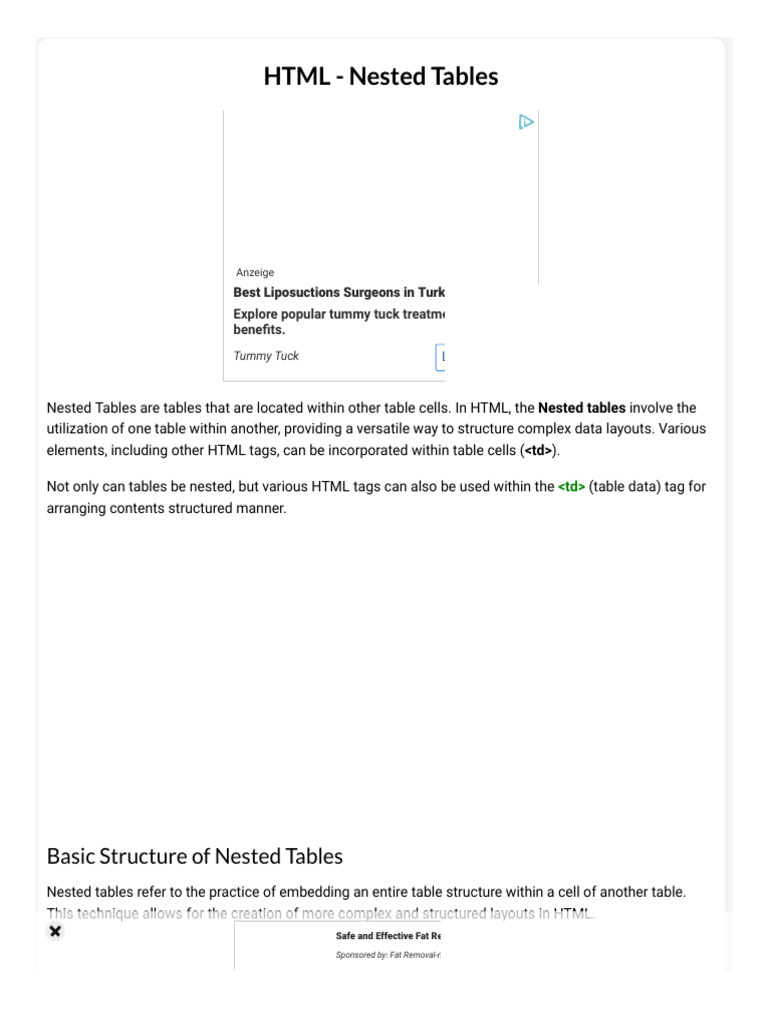 Step 3 - Embed Inner Table: Inside the cell, embed a new table structure using the <table> tags.