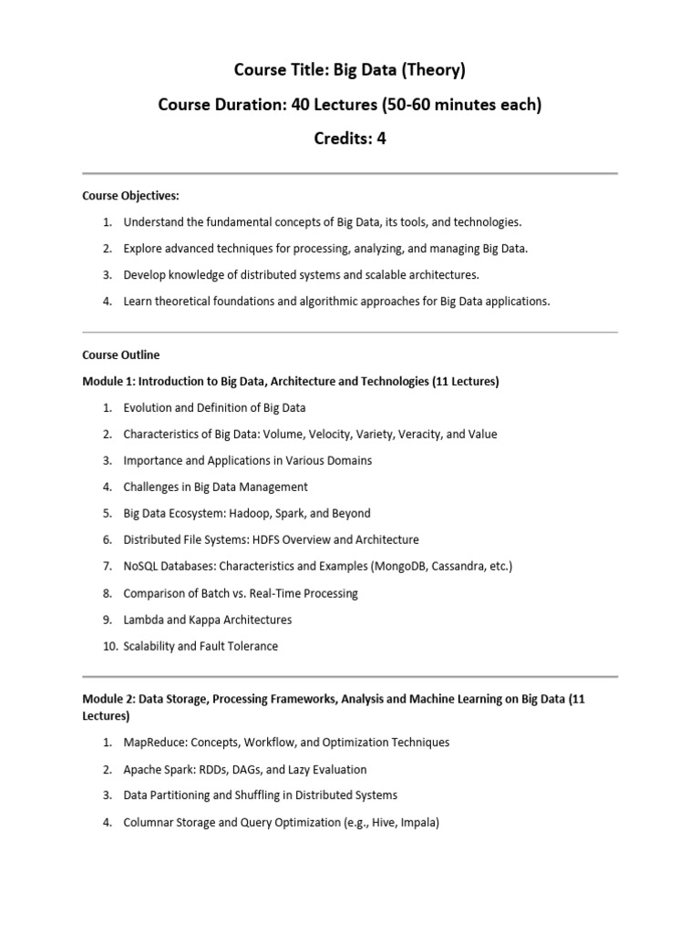 4. Learn theoretical foundations and algorithmic approaches for Big Data applications.