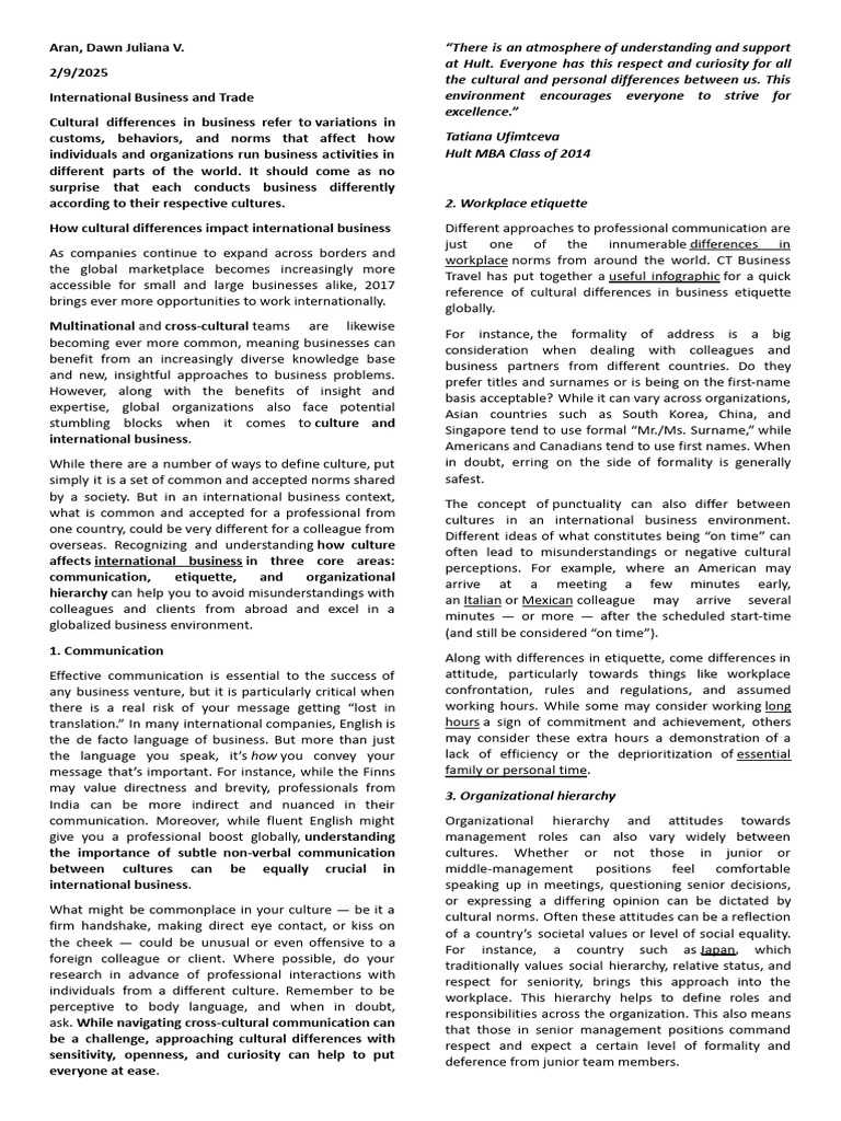 reference of cultural differences in business etiquette