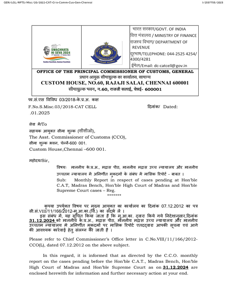 GEN/LGL/RPTS/Misc/20/2022-CAT-O/o-Comm-Cus-Gen-Chennai I/2557755/2025