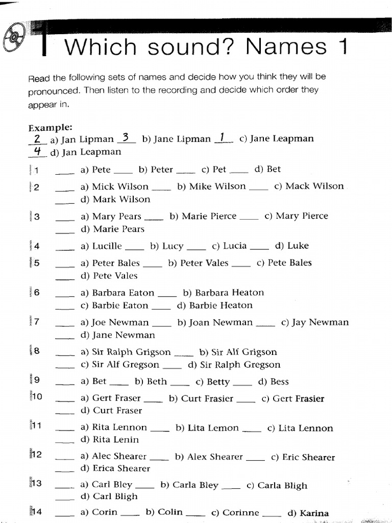Listen to the recording and decide which names you hear.