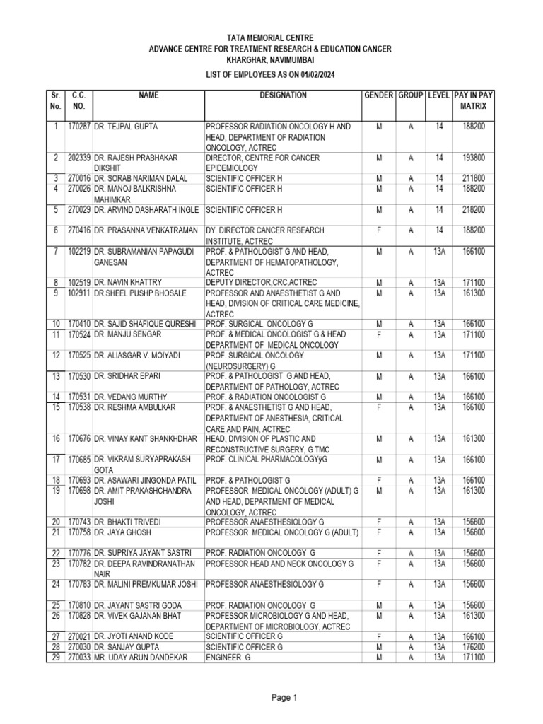 1 170287 DR. TEJPAL GUPTA PROFESSOR RADIATION ONCOLOGY H AND M A 14 188200