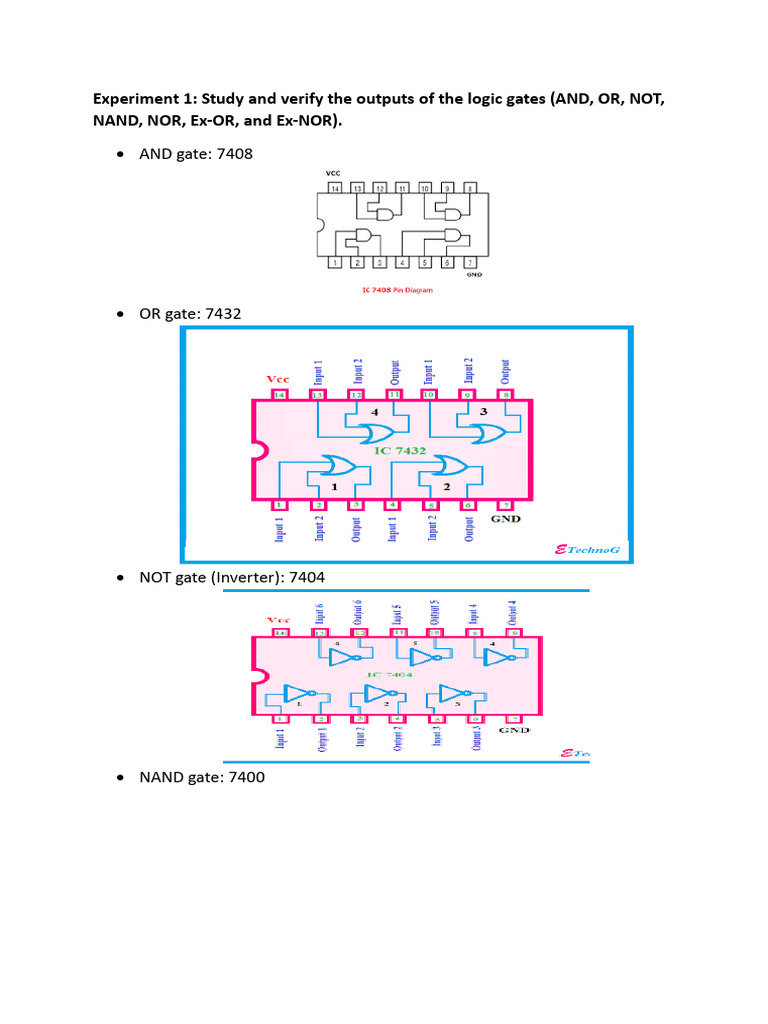 Experiment 1: Study and verify the outputs of the logic gates (AND, OR, NOT,