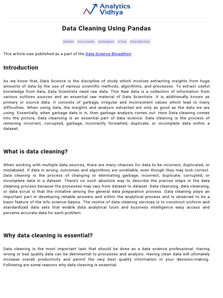 Article Url - https://www.analyticsvidhya.com/blog/2021/06/data-cleaning-using-pandas/