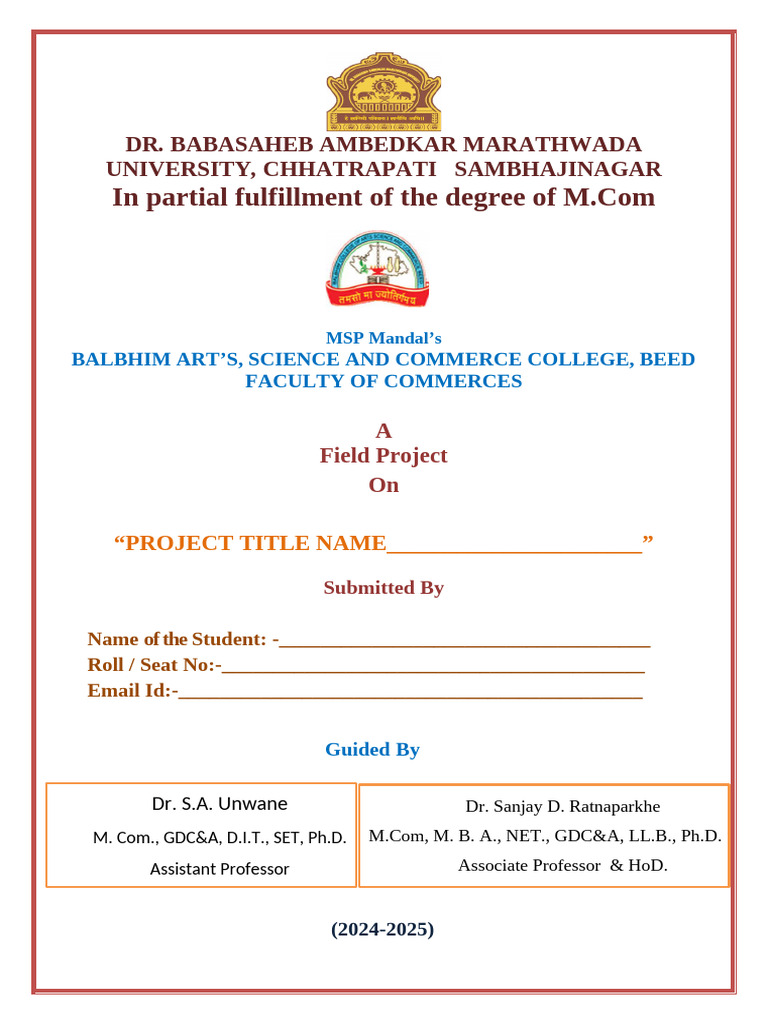 M.Com I st. Year IInd Semester Field Project has completed the