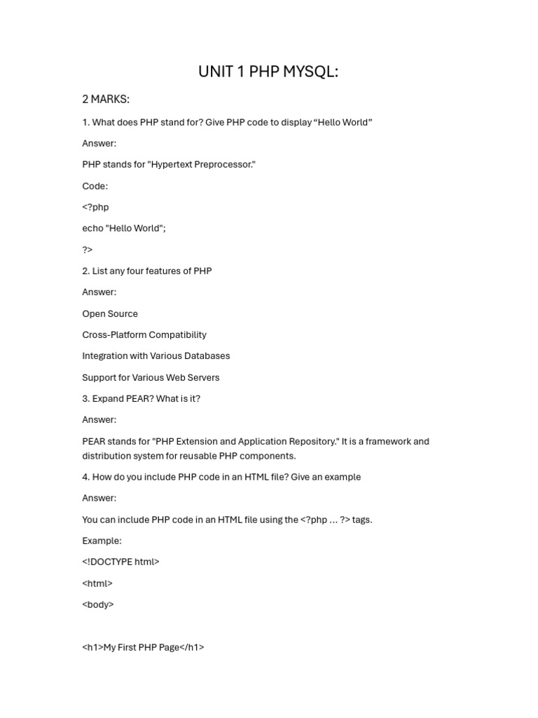 UNIT 1 PHP MYSQL: