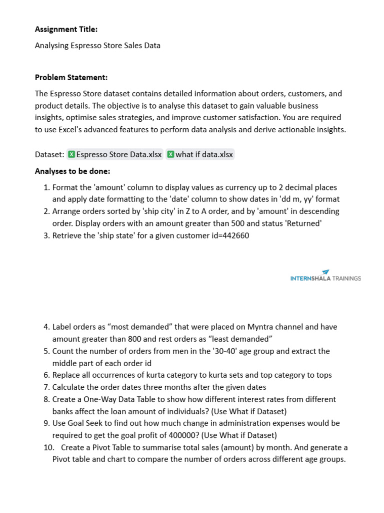 Dataset: Espresso Store Data.xlsx what if data.xlsx