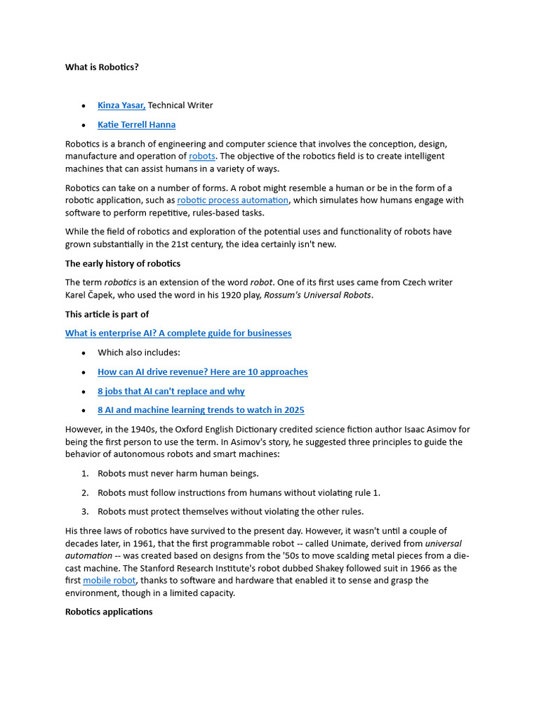 • Artificial intelligence (AI). Robotics is widely used in AI and machine learning (ML) processes,
