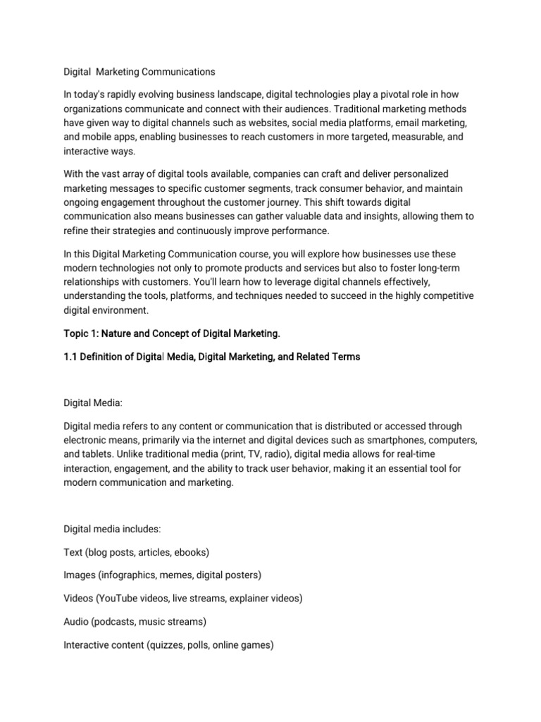 mobile apps to connect with current and potential customers. Digital marketing is characterized