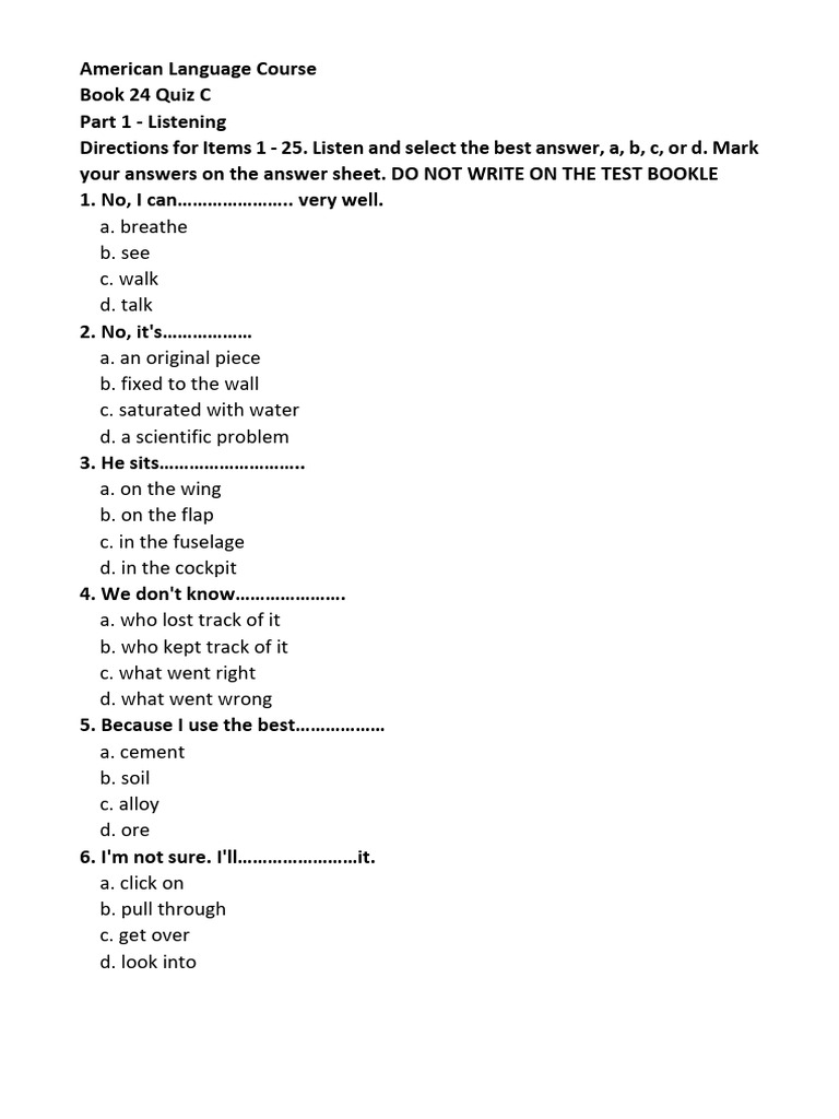 Directions for Items 1 - 25. Listen and select the best answer, a, b, c, or d. Mark