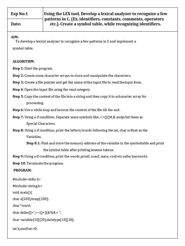 Date: etc.). Create a symbol table, while recognizing identifiers.