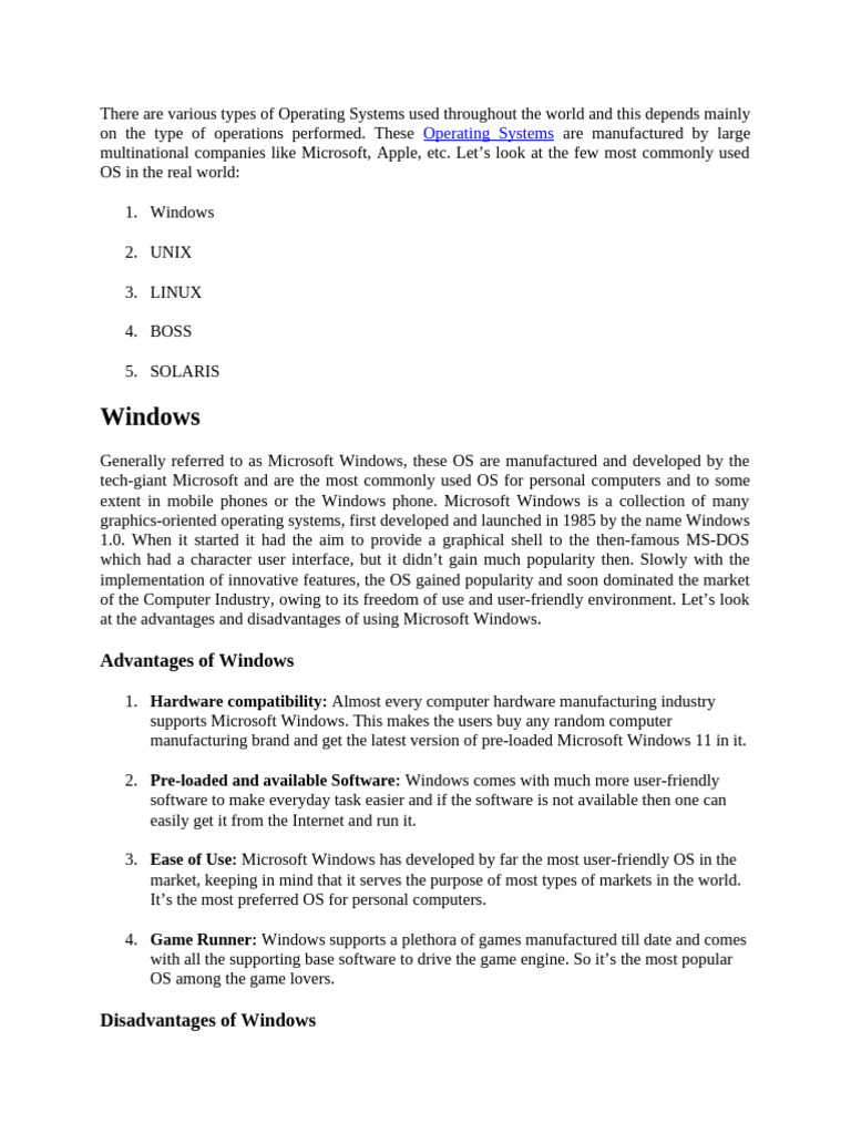 computers. Windows is known for its user-friendly interface and compatibility with a