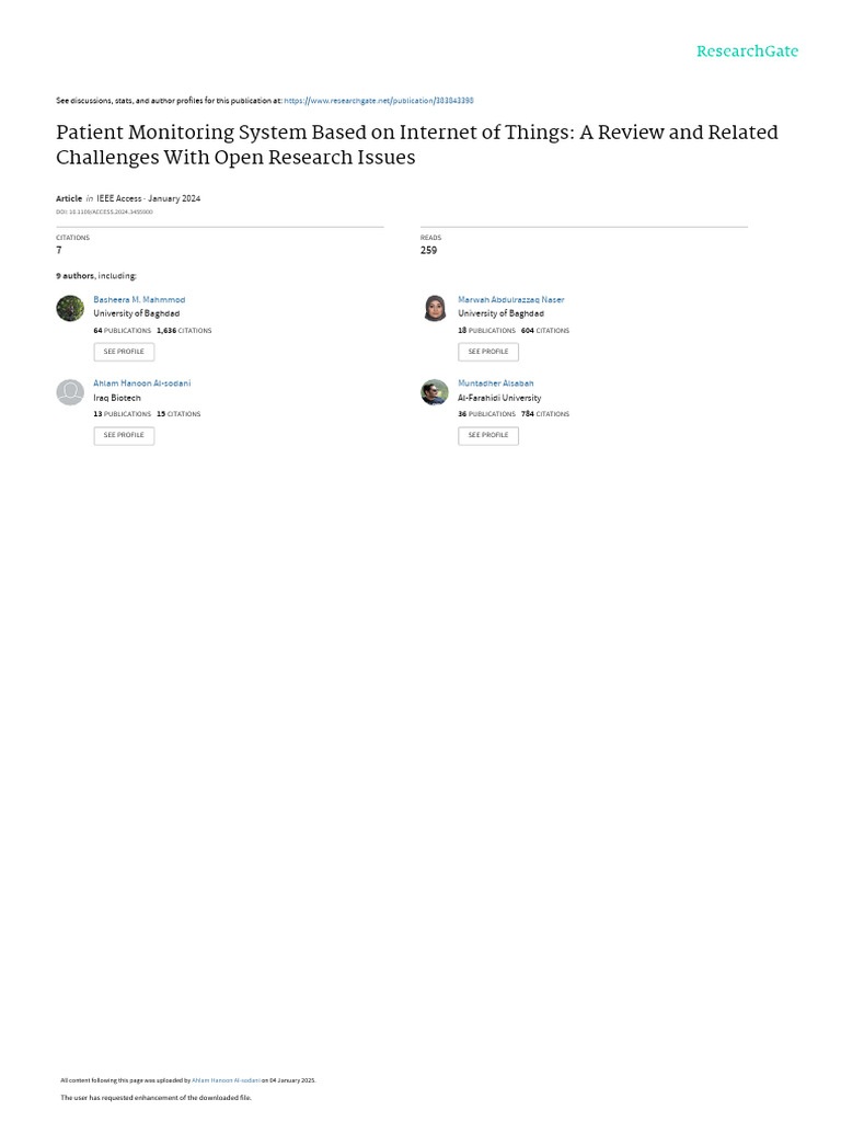 [152] H. Javdani and H. Kashanian, ‘‘Internet of Things in medical applications no. 2, pp. 1485–1504, Mar. 2023.