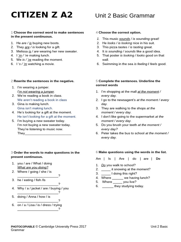 CITIZEN Z A2 Unit 2 Basic Grammar