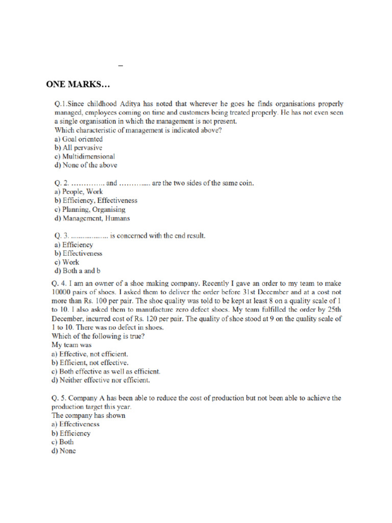ONE MARKS…