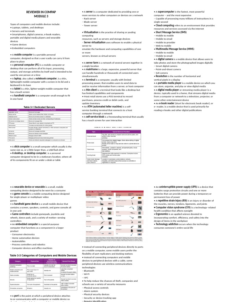 REVIEWER IN COMPAP • A server is a computer dedicated to providing one or • A supercomputer is the fastest, most powerful