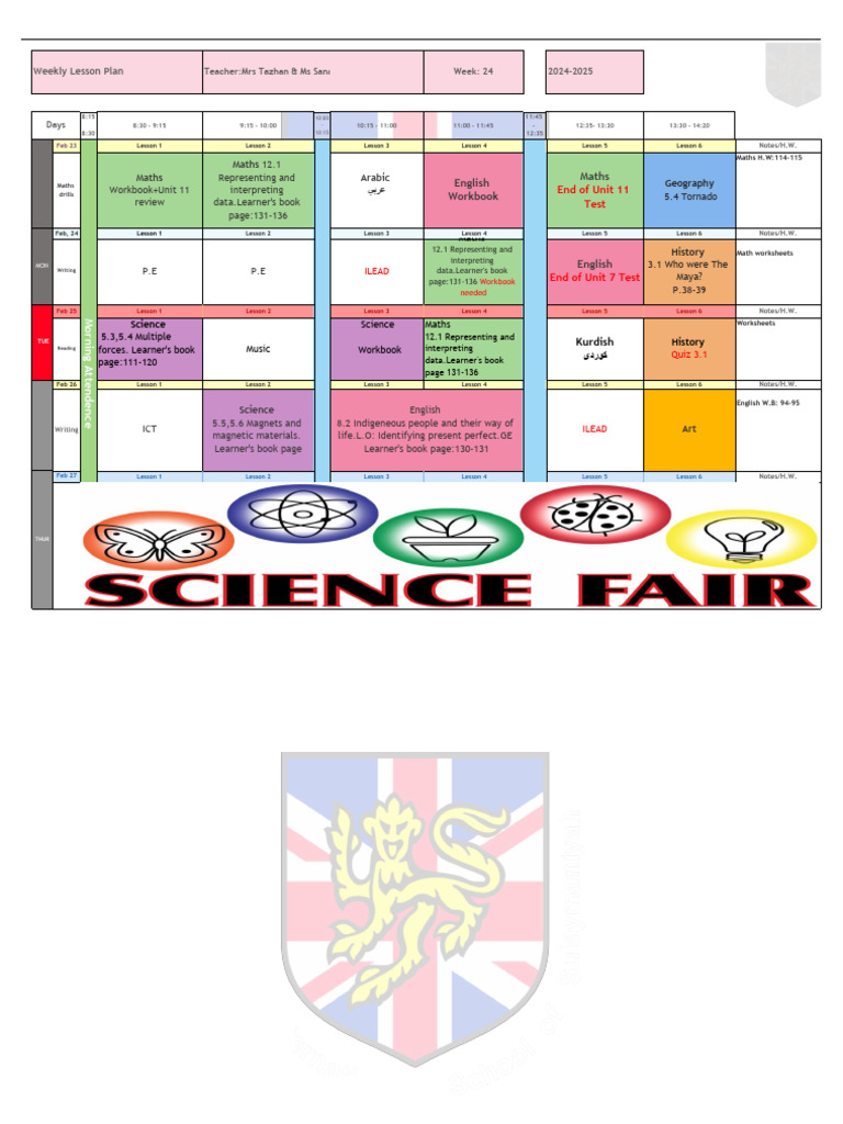 Weekly Lesson Plan Teacher:Mrs Tazhan & Ms SanaClass:5B Week: 24 2024-2025