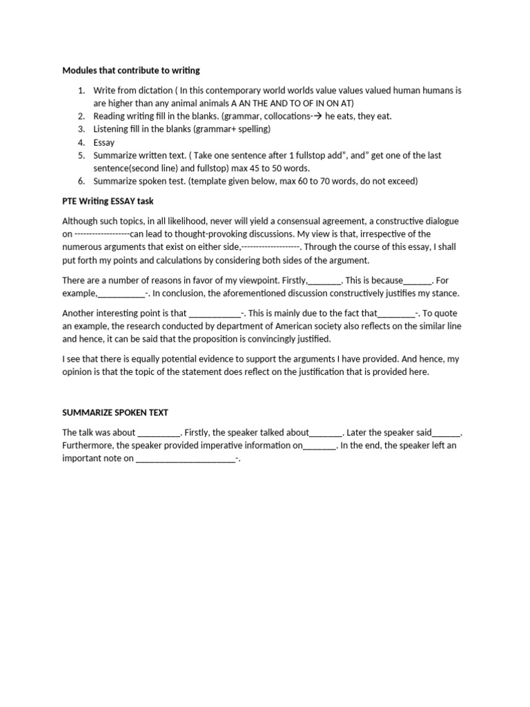 PTE Writing ESSAY task