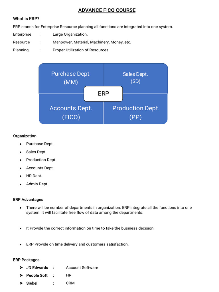ERP stands for Enterprise Resource planning all functions are integrated into one system.