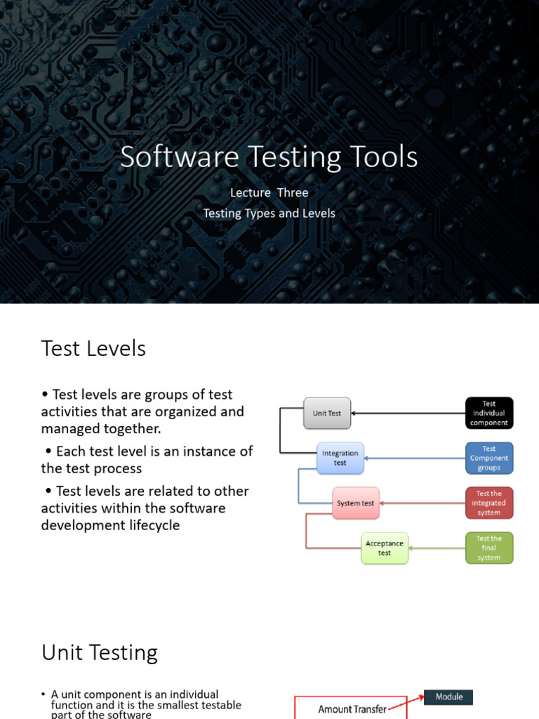 • Unit testing is the first level of software