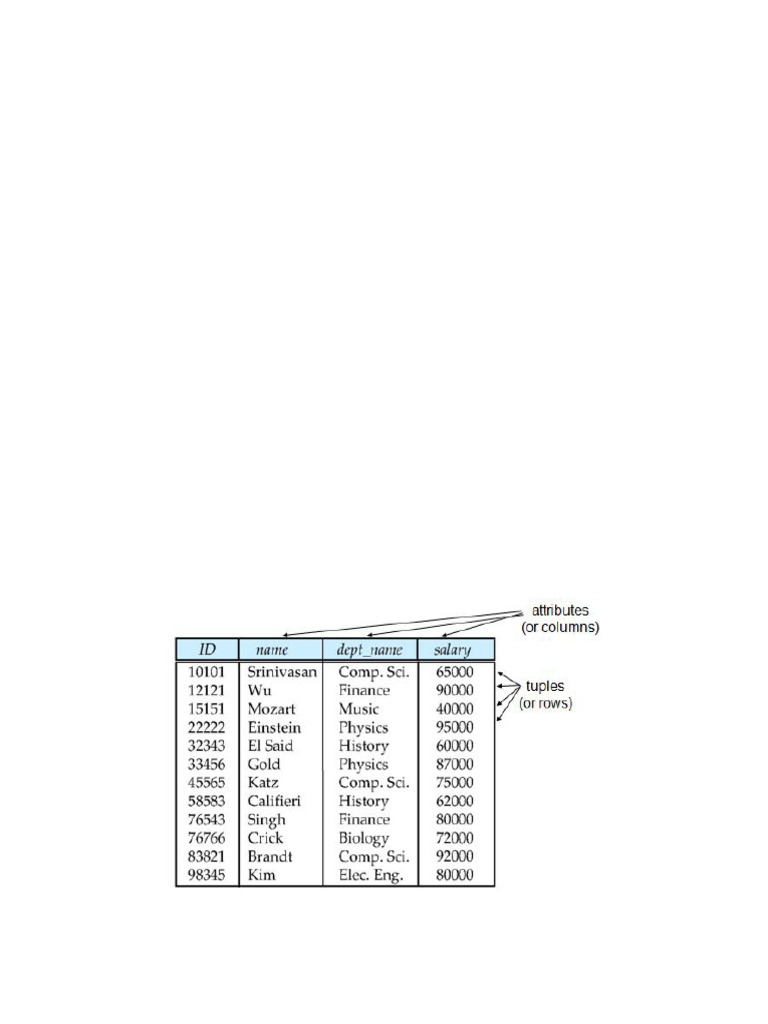 set of all possible salary values. In general, a table of n attributes must be a