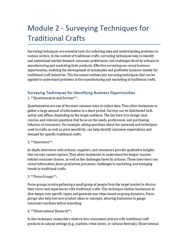 traditional craft industries. This document outlines key surveying techniques that can be
