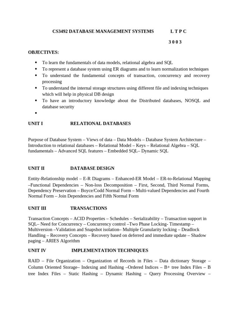 o A relation is in 5NF if it is in 4NF and not contains any join dependency and