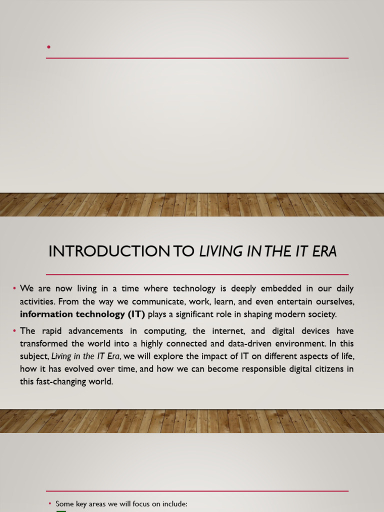 subject, Living in the IT Era, we will explore the impact of IT on different aspects of life,