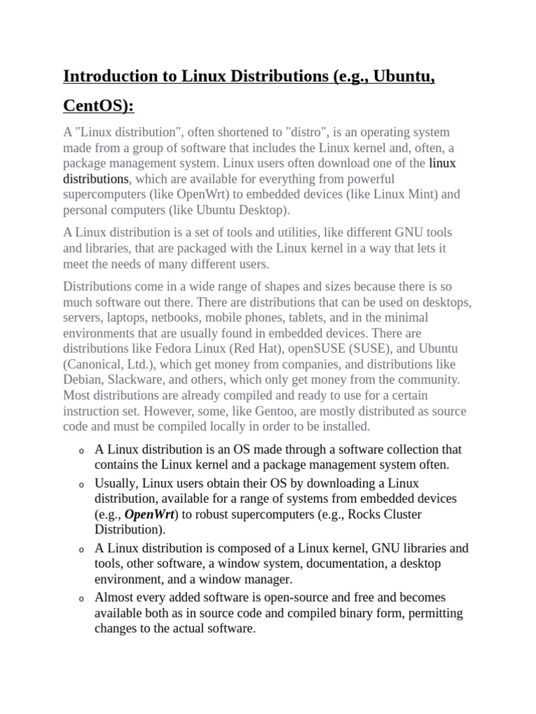 o A Linux distribution is composed of a Linux kernel, GNU libraries and