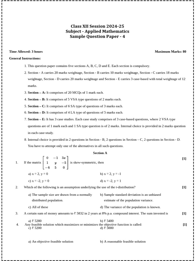 7. Section – E: It has 3 case studies. Each case study comprises of 3 case-based questions, where 2 VSA type